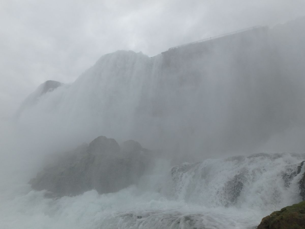 母が「ナイアガラの滝」を楽しみたい!カナダ滝、アメリカ滝両方いきたいとのことで、カナダにいながらアメリカ滝にもいけるこのツアーに参加しました。5~10月限定・英語ガイドでのツアーのようですね。案内は英語のみの案内です。ゆっくり話してくださったのでわかりました。集合時間なども中学生に習った英語を駆使して聞けばわかります。話も大丈夫です。24時間よりも前に電話でのリコンファームも必要とのことでしたが、名前と日にちを言えば大丈夫でした。現地に到着するのが24時間よりも前ならホテルの方もかけてくださるはず。この日は20人程度の参加で日本人は私と母のみでした。ガイドさんも優しく、ツアー参加者の方も私達を気にかけて集合時間のときも声をかけてくれました。アメリカ側しかない「霧の乙女号」にも乗りました。「The Cave of Wind Gorge Walk」(滝を展望できる遊歩道)は本当に迫力満点で滝のすぐそばまで行けます。圧巻ですよ。