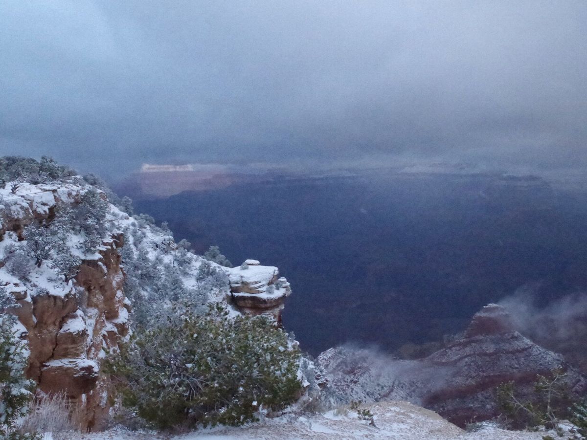 ガイドのよしさんが変わりやすい天候に合わせてスポットの回る順番を変更して下さり、雪で入れなかった箇所もありましたが、たくさん回った気分でした。最後の夕日は奇跡的?にちょっとだけ照らされたグランドキャニオンが見れました。遠くの見通しは悪かったですが、雪景色はとても幻想的で感動しました。あと、大自然のど真ん中で静かなんですが、壮大な自然の音が聞こえました。とにかく日頃感じられない空気感が素敵で、寒くなければいつまでもいたい気分でした。