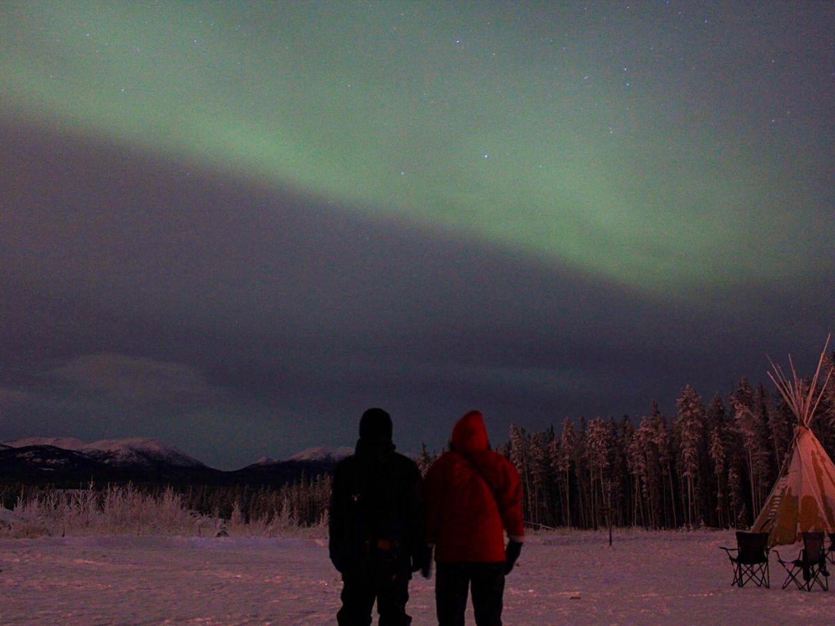 オーロラ鑑賞初参加。外は−20度、テントで暖をとり、時を待ちます。