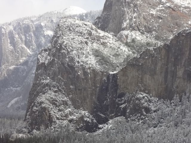 前日の雪でうっすら雪景色のヨセミテはとても幻想的で素敵でした。天気予報での寒さを心配しましたが、雪景色と秋の気候で最高でした。