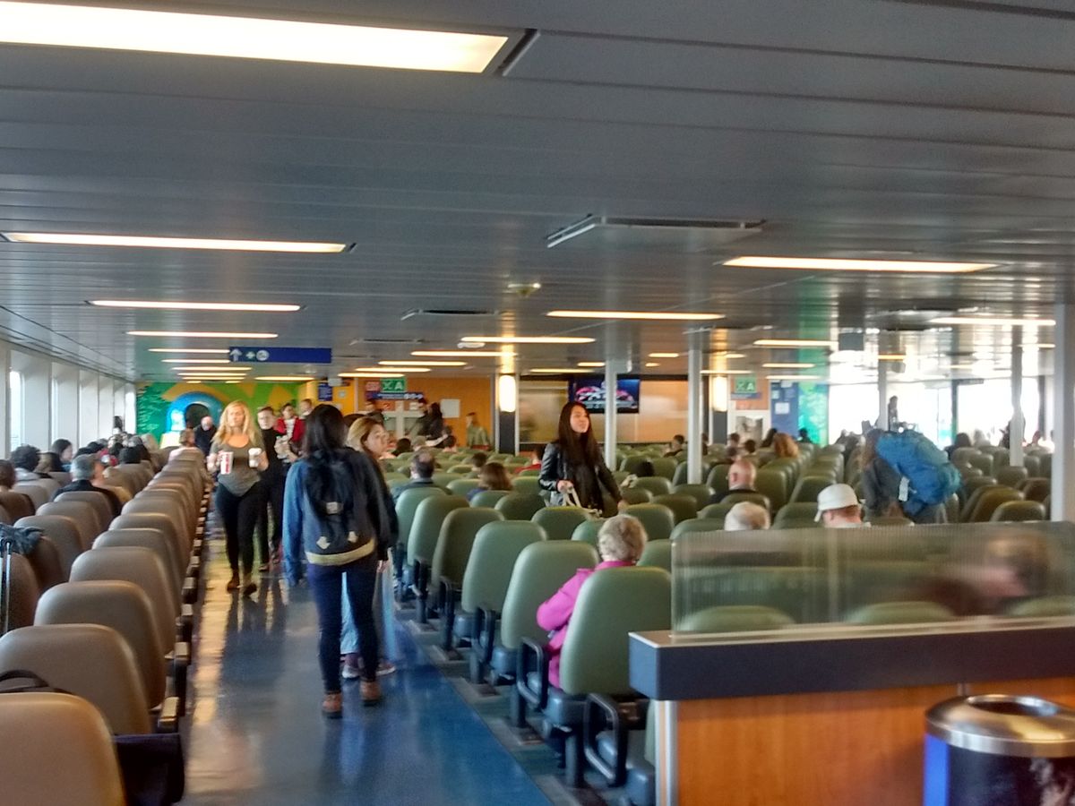 ダウンタウンより少し外れたホテルに滞在していたので往復のピックアップがあるこのツアーを申し込みました。帰りのフェリーが 19:30 発だったので遅い時間に自分で移動するよりは楽 & 安心でした。当日は雨だったので自分で移動することを考えたら断然、ツアーに参加して良かったと思います。ツアー前日にホテルピックアップの電話が部屋にあり、当日は時間通りのお迎えでした。フェリーは約 1.5時間ですが、港に着く 30分ほど前にバスに戻るよう船内アナウンスがあるので長くは感じませんでした。
