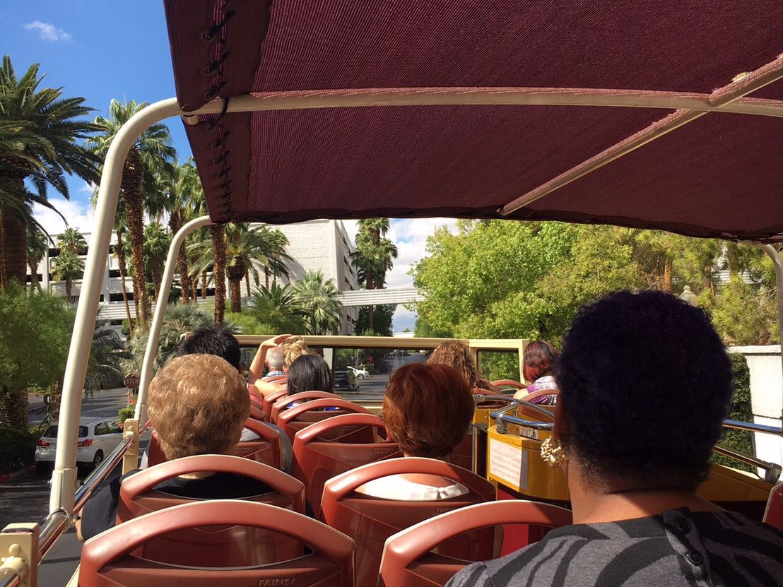 2階席はオープンデッキのため、英語ガイドの説明を聞きながら観光、途中途中、観光ポイントやホテルにあるバス停で乗り降りできます。ダウンタウンルートでは日本人に人気のアウトレットでも乗り降りできるためとても便利です。気を付けないといけないのは、30分毎の運行であること、たまに渋滞にはまること、運行時間が10-19時に限られていることかと思います。写真は2階席からの風景となります。