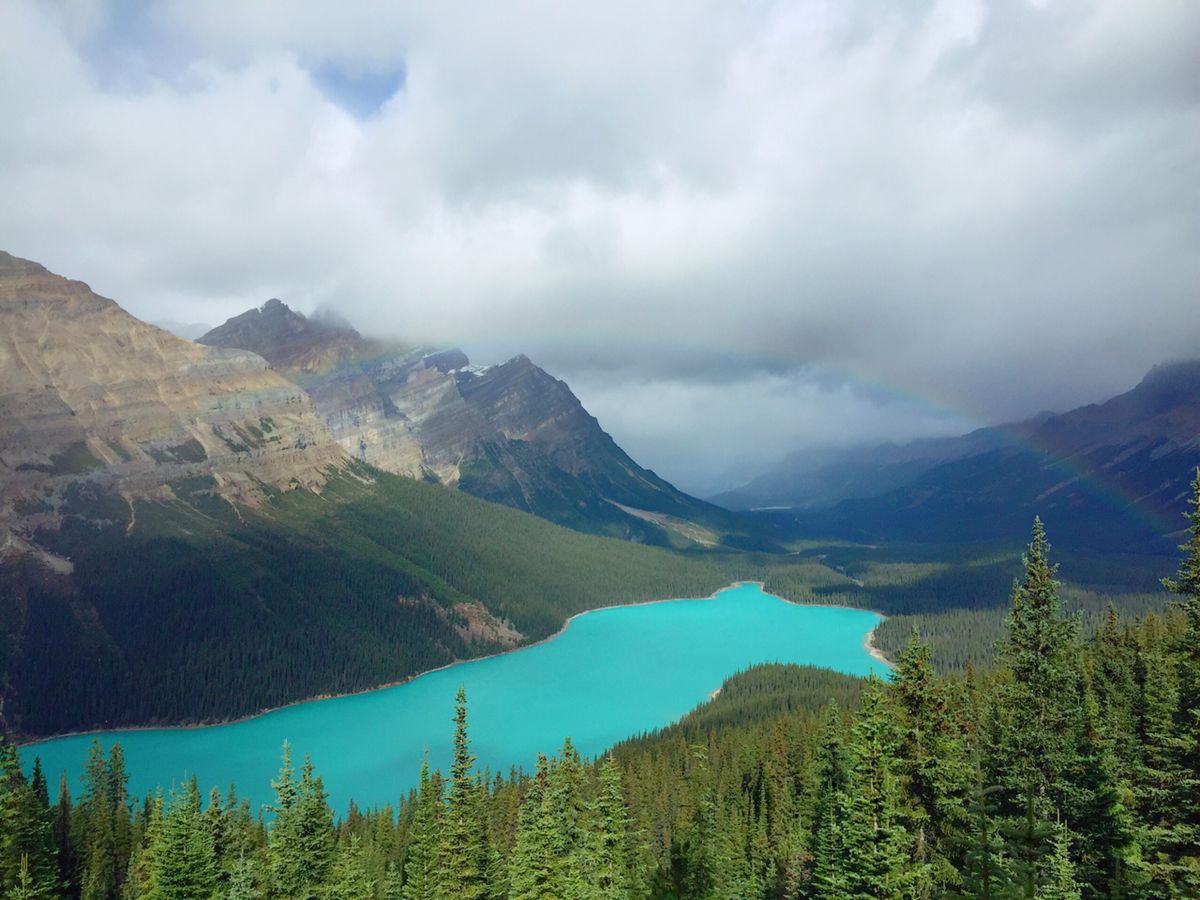 あいにくの天気でしたが、その天候の影響で、いたるところでカナディアンロッキーと虹がコラボする美しい景色を観ることができました。現地ガイドさんの話が面白く盛り上げてくれて、とても満足でした。いつか晴天のボウレイクを観にリベンジしたいです…!