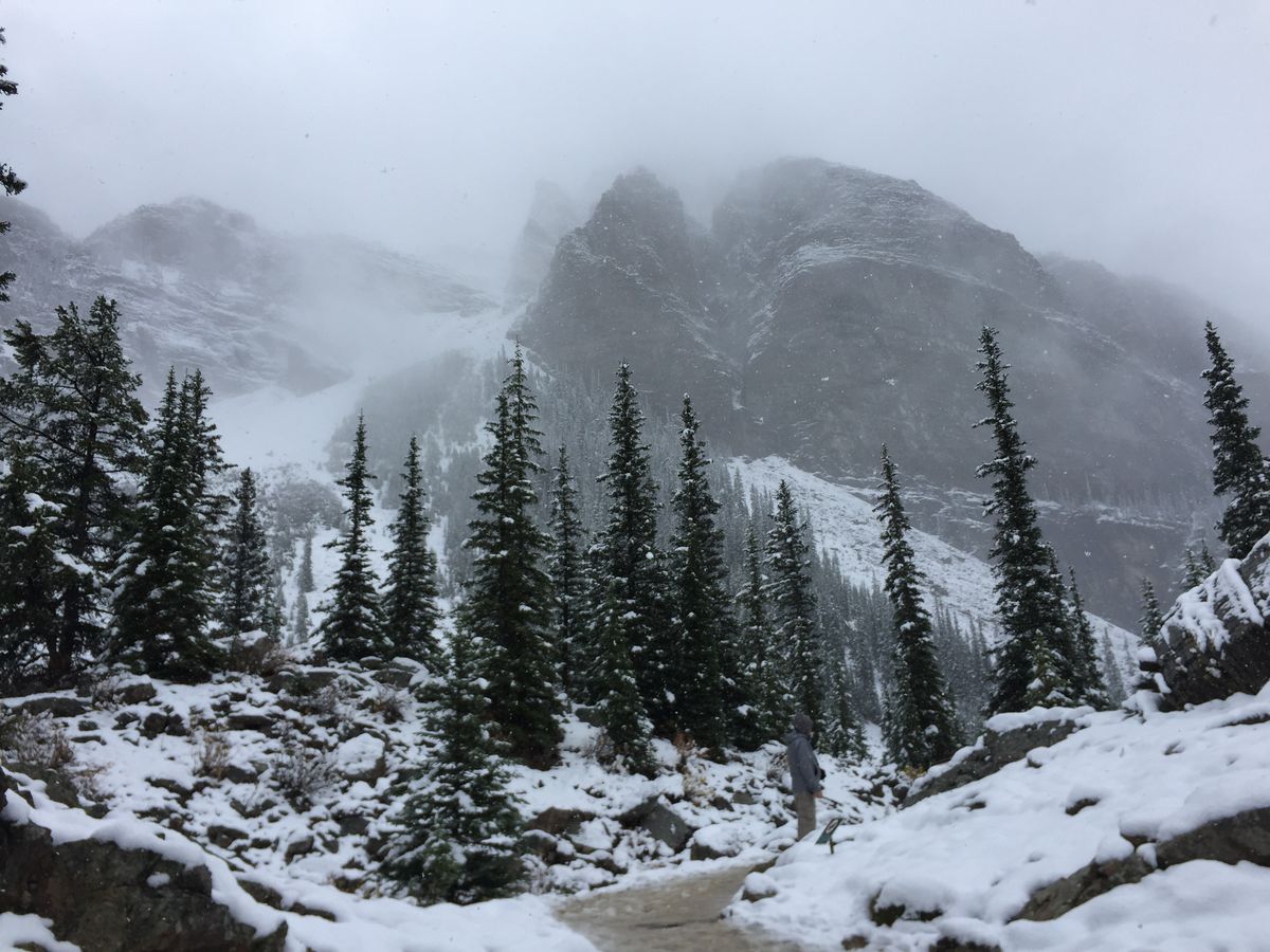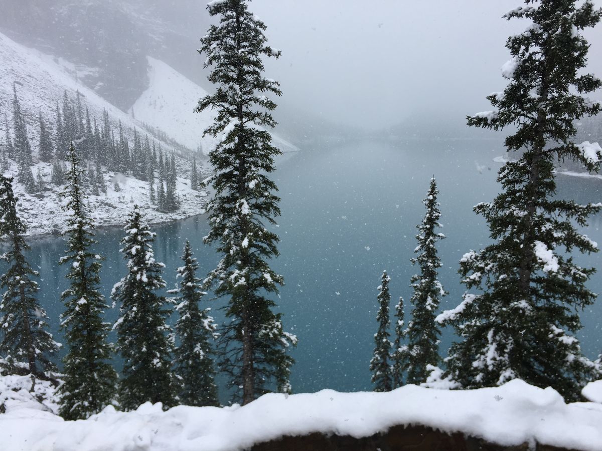怪しい天気だな、と思っていたら、朝から雪が!秋に行ったつもりが。一面の雪景色に参加者一同、面食らいました。ただ、ガイドさんが終始優しい口調で励まし続けてくださり、それがとても心の支えでした。そして、我々の思いが通じたのか、午前の雪が嘘のように、エメラルド湖では晴れ渡り、カヌーにも乗ることが出来ました。本当に素晴らし一面の体験となりました!
