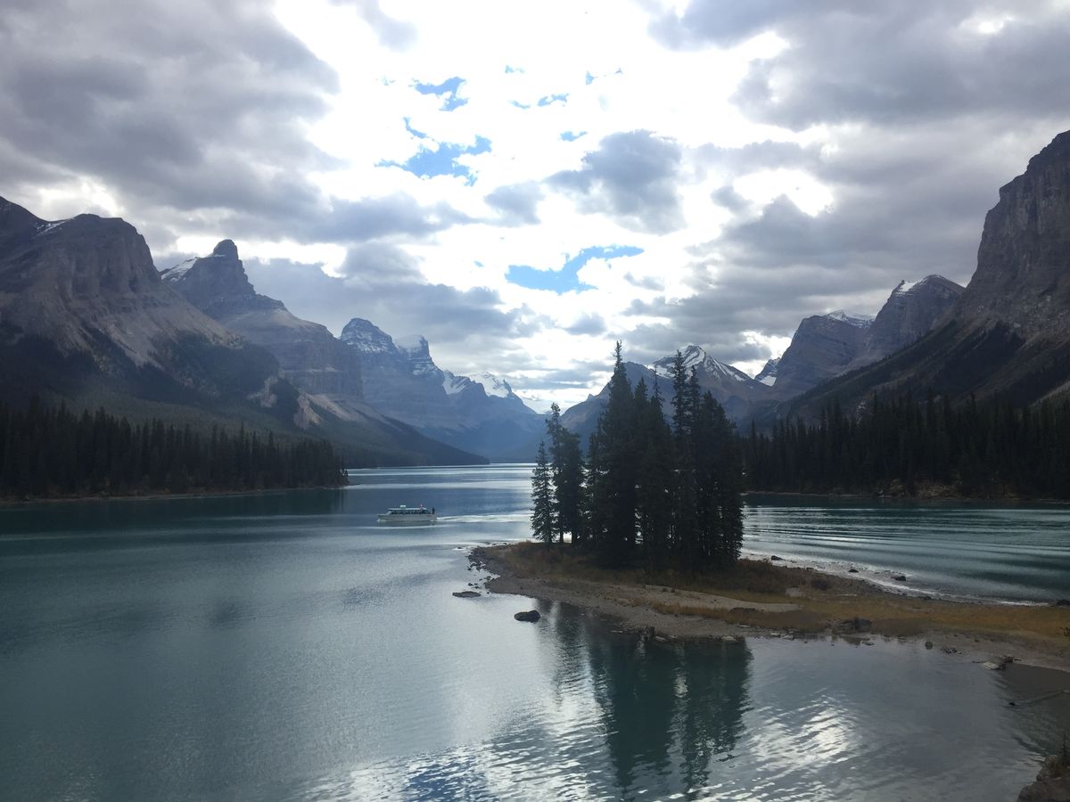 写真やガイドブックのような青いマリーン湖を見たい場合はクルーズプランに参加することをおすすめします。クルーズでは湖に浮かぶスピリットアイランドにいけるので、写真やガイドブックにのっているマリーン湖の写真が撮れると思います。クルーズはクルーズ会社のガイドになり、参加者もツアー以外の人と混載になりましたがガイドのお姉さんはとても陽気で船内を楽しませてくれました。