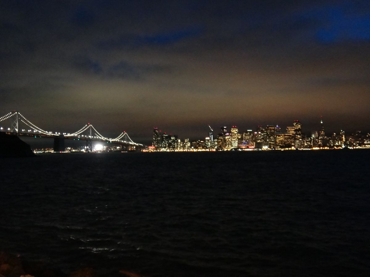 でもそのあと、ベイブリッジの夜景観賞としてトレジャーアイランドへ行ったときは、すでに夜のとばりが下りてきて、対岸からベイブリッジとサンフランシスコの素晴らしい夜景を堪能することができました。
