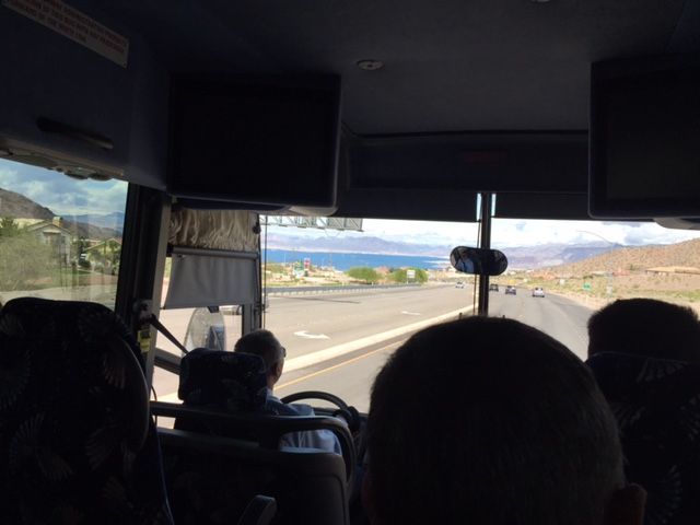隣のホテルでのピックアップはドライバーが迎えに来てくれて、Welcome Las Vegas サインで写真ストップをしてグレイラインの営業所で受付。体験談を見ていたので問題ありませんでした。ドライバーの解説を聞き、景色を見ているうちにほどなく到着という感じでした。