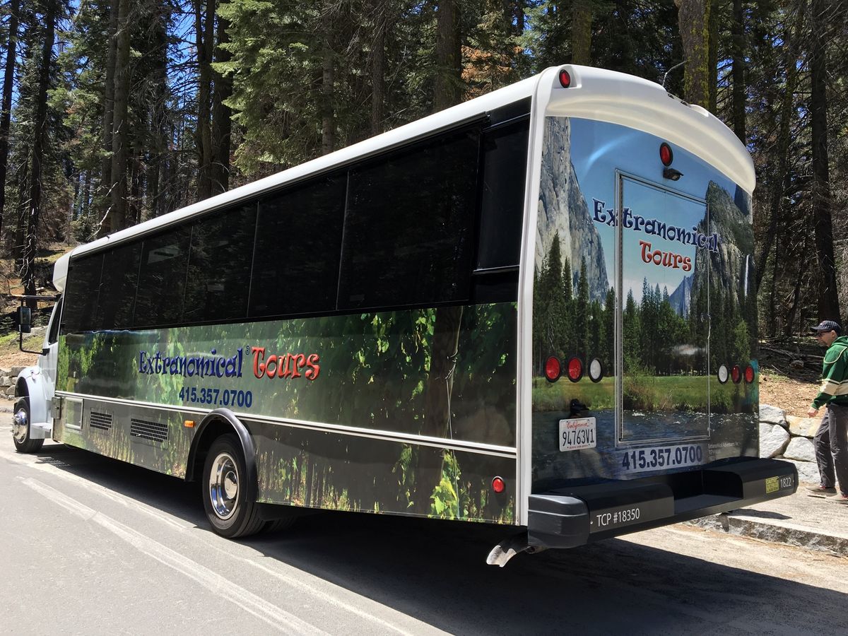 ヨセミテ国立公園の魅力は書くに尽きないので、このツアーの特徴とその魅力について投稿したいと思います。このツアーで使うバスは、小型バスか中型バスになるようです。私が乗車したバスは30人くらいの定員のバスで満席でした。サンフランシスコ市内からヨセミテ国立公園に行く経路は大きく二つありますが、走行距離が短い経路は途中に険しい山道と小さめなトンネルがあるために、大型バスの通行が不可能になっています。そのため、このツアーはヨセミテの滞在時間が長いという訳です。しかし、冬期はこの道も通行止になるために、冬期のこのツアーの行程がどのようになるかは定かではありません。参考までに。