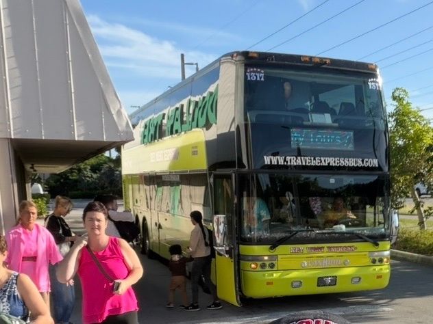 時間通りにバスが来るか心配だったが、10分遅れで大型バスが迎えきた。車内は案の定、冷房が効きすぎていたが、現地ガイドさんがキーウエストでの見所を紹介してくれ、名物のキーライムパイのお店もおしえてもらった。