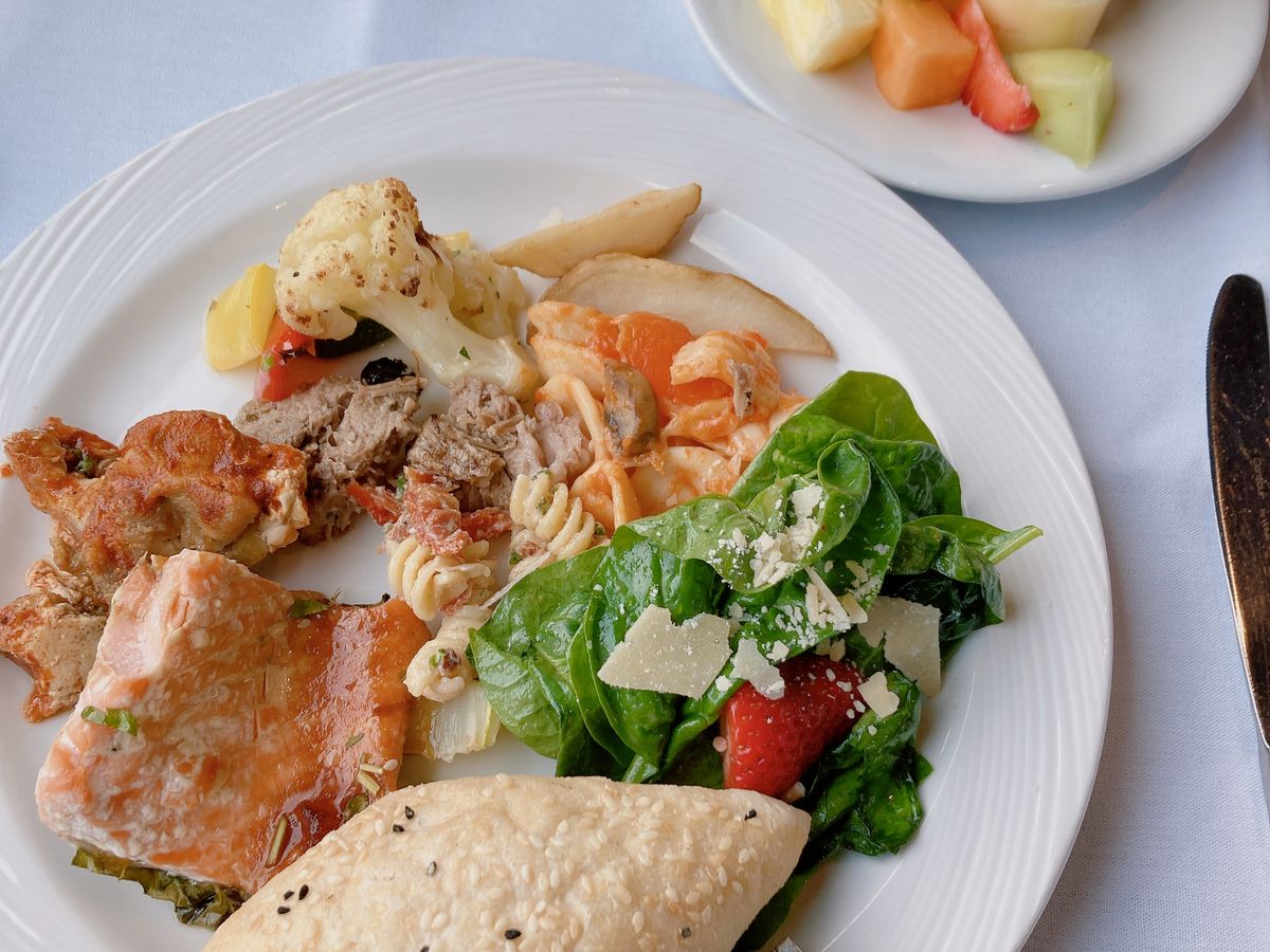 ご飯はバリエーションがあって美味しかったです。ケーキは結構甘かったのであまり量は食べられませんでした。景色を見るために食べてる途中で席を離れると、まだ食べかけのお皿を下げられてしまうので注意です(笑)。揺れはまあまああったので、酔いやすい方は酔い止めがあった方がいいかもしれません。自由の女神はマンハッタンやブルックリンからは大分距離があり、陸地からはとても小さくしか見えなかったのですが、このクルーズではリバティー島の近くまで行けて、さらに自由の女神の目の前で速度を落としてくださったりしたので近くでじっくり見られて良かったです!