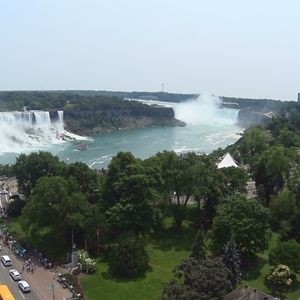 早朝4:30にホテル発、夜10:00ホテル着でした。天気も良く&ナイアガラの水量も多く楽しめました。昼食は滝の見えるヒルトンホテルのレストランのビュッフェでした。カナダに入国&出国する橋が空いてるか混んでるかで、帰りの飛行機に合わせて行く場所を調整してくれるようです。価格的にはちょっと高い気もしましたが、往復飛行機&レストラン食事&拘束時間を考慮するとまあまあ納得です。一度は見る価値はありました。カナダのお土産も「こてこて」の日系お土産店で買えました。