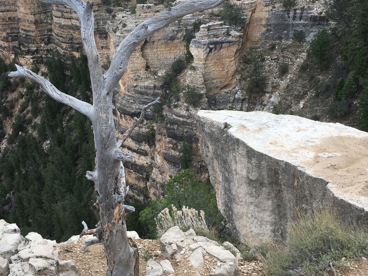 そしてグランドキャニオンの大きさと空気と飲み込まれるような美しい崖。何とか尖った崖の端っこへ立ってみたいと色々歩き回りセルフィー棒片手に崖撮影。誰かに頼んで遠くから撮ってほしかったです。笑