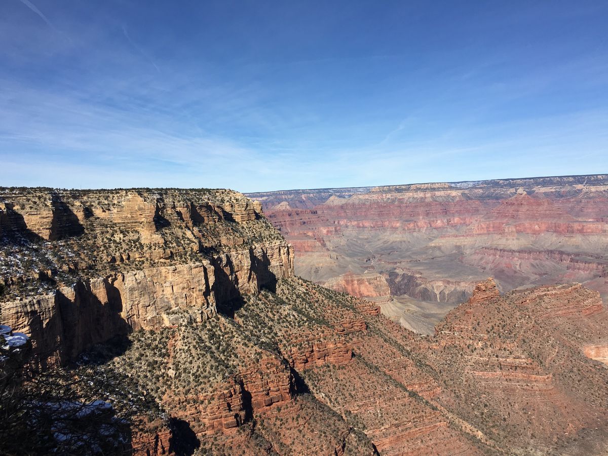 グランドキャニオンは壮大でした。11月初旬でしたが、うっすらと雪が積もり、朝日鑑賞(6時頃)はマイナス10度と極寒でしたが、見飽きない景色です。持参したカイロが役立ちました。