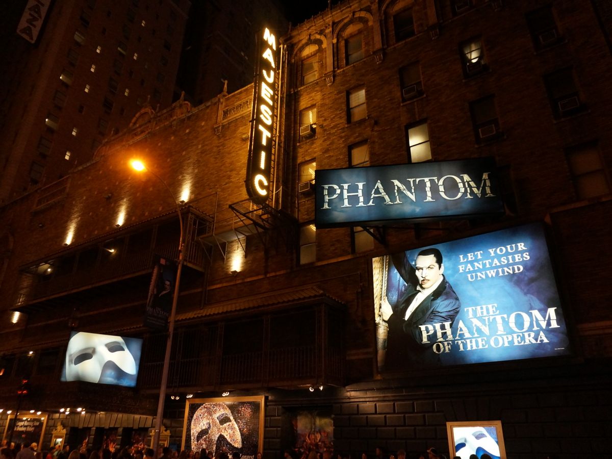 前日に”オペラ座の怪人”を現地の劇場で買いましたが、そのほうが席を選ぶことも出来ますので英語に支障なければ現地で買われた方がいいと思います。
