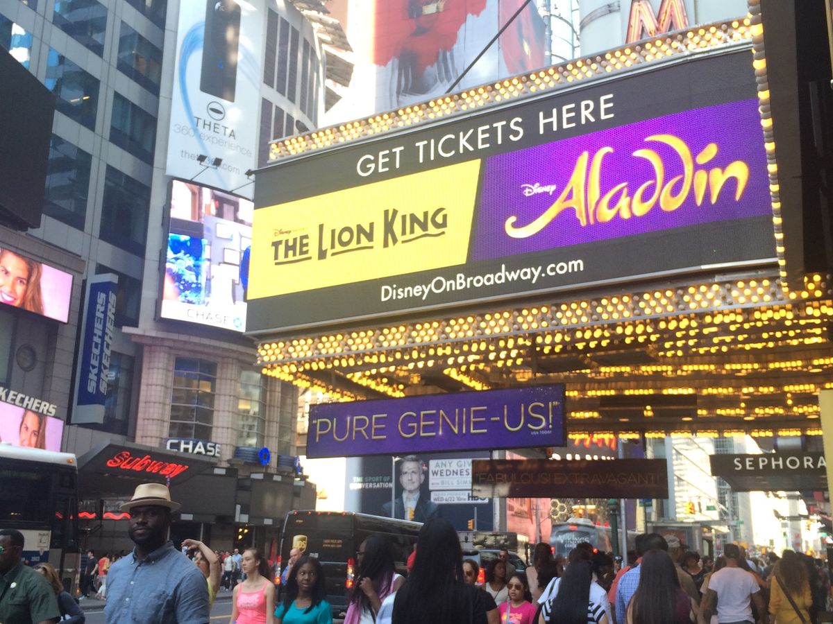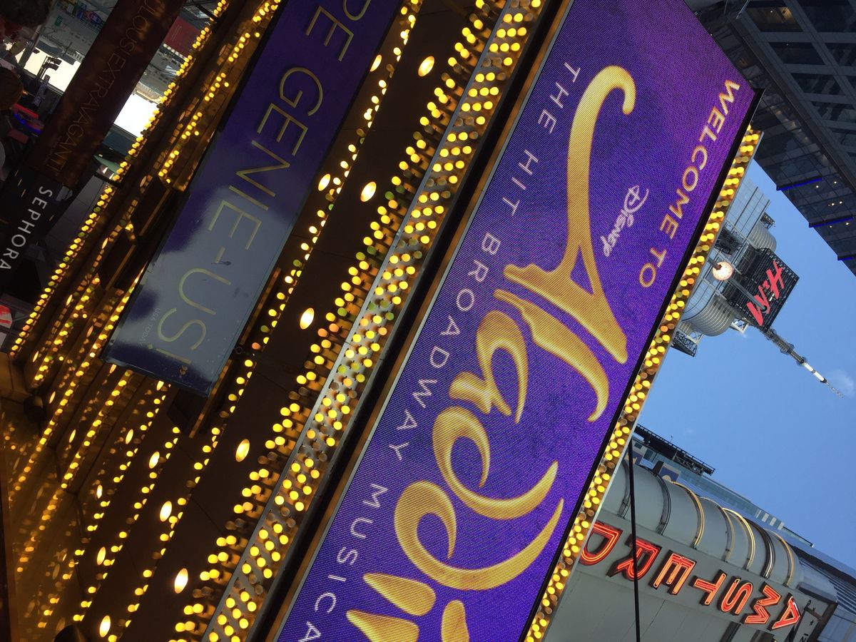 アラジンのミュージカルを初めて見ましたが、笑いもあり、音楽も良かったりでとても楽しめました。主役の歌声もとてもよくさすがブロードウェイという感じで大満足でした。今度はまた別のミュージカルも見たいと思っています。