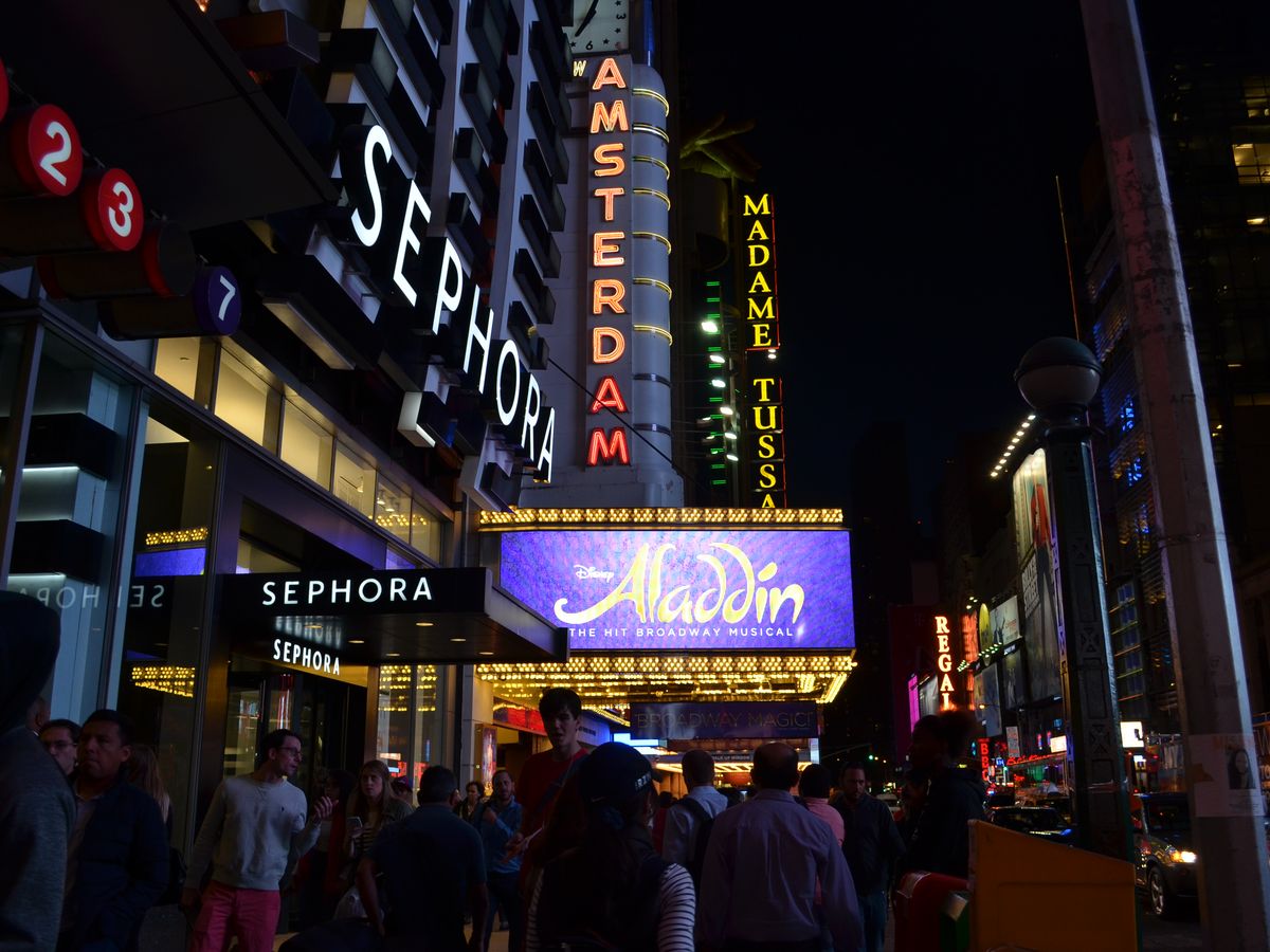 ミュージカル自体は素晴らしかったです!どのミュージカルを見ようか迷った時に、youtubeなどを参考にしたのですが、一番華やかなアラジンを選びました。大正解でした。ニューヨークでも人気があるようで、街のいたるところに広告がありました。スワロフスキーの石が散りばめられたカラフルな衣装に、アラビアンのセット。一瞬でアラジンの世界にワープです。さすが、ニューヨークと思ったのがキャストの人種も様々。白人、アジア人からアフリカンアメリカンまで、より舞台を華やかにしてくれます。