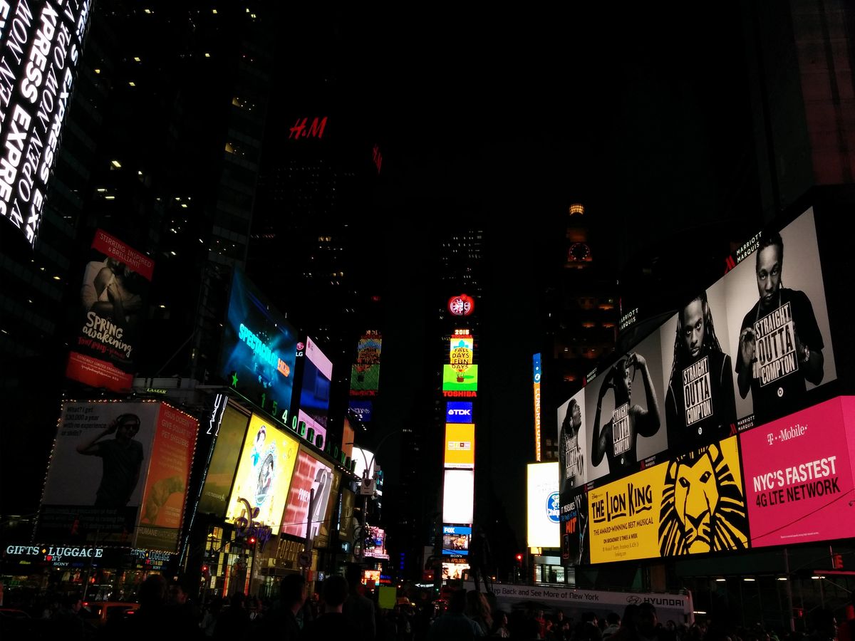 以前ロンドンのミュージカルチケットもベルトラさんにお世話になり、今回のブロードウェイの予約もベルトラさんを利用しました。劇場周辺はかなり混雑しているので、2時間ほど前に場所の確認と、チケットを交換しました。タイムズスクエアがすぐ近くにあるので、写真を撮ったあと周辺でちょっと早めの夕食。