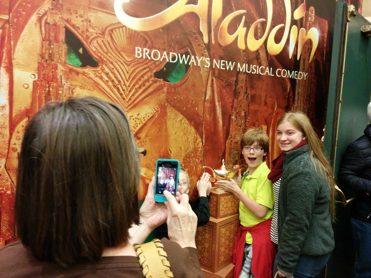 アラジンは大人気という事で、このミュージカルだけは日本から予約していきました。案の定、子供から大人まで大人気で満席でした。ジニーが大人気で盛り上がりも日本で見る のとは全然違う感じでした。やはり本場は違います。お勧めです。