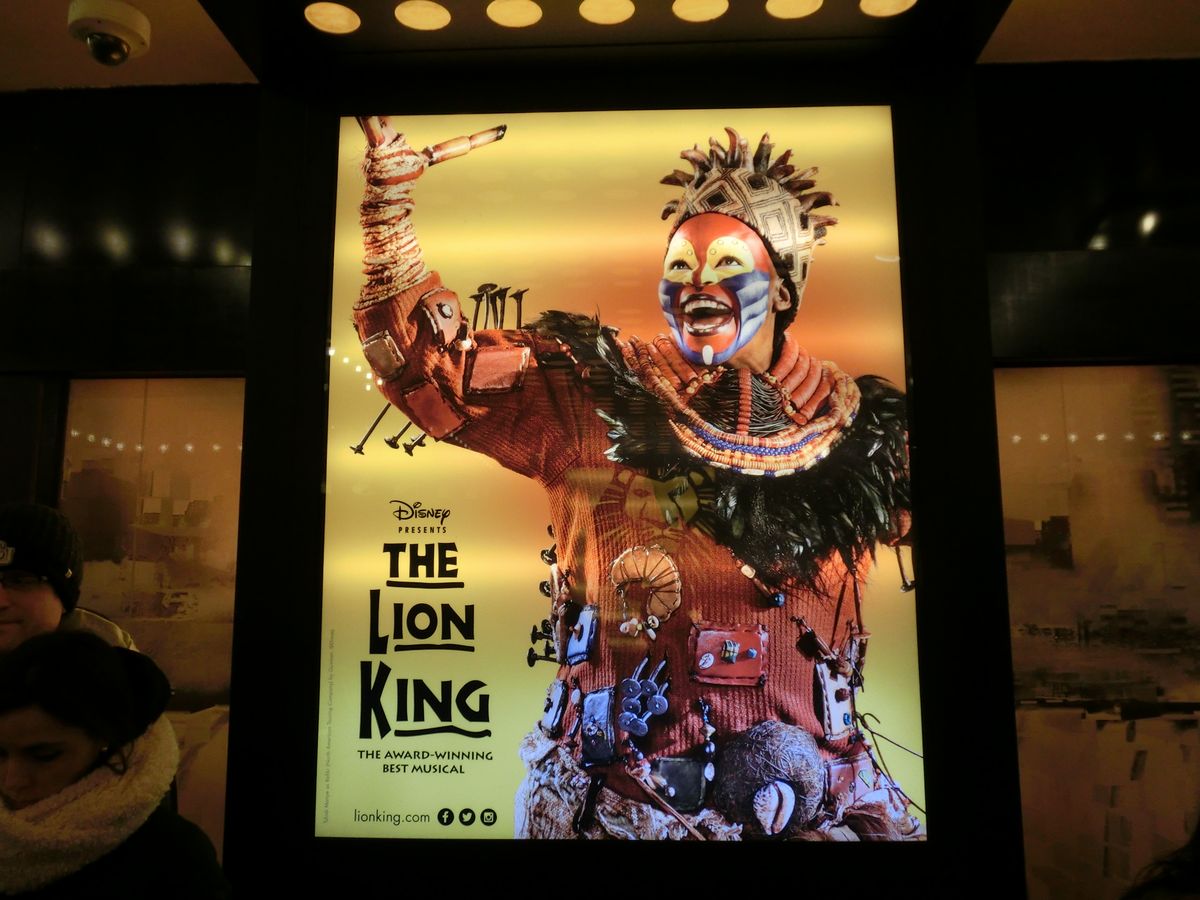 憧れのブロードウェイへ!!すごく、感動しました。ライオンキングは映画で何度も観たことがあったので、英語がわからなくても楽しめる内容でした。次、ニューヨークに行く際は、違うミュージカルに挑戦したいです^^