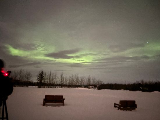 1日目は移動中の車両の窓から見え始め、オーロラビレッジ3時間滞在中にもたびたび現れ大満足。