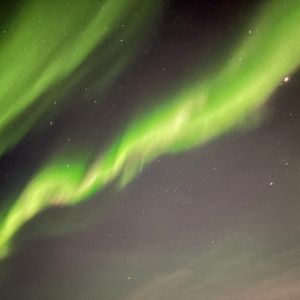 オーロラ発生する方角や時間、形などはバラバラでした。早い時間では午後11時頃、遅い時間では午前6時半に鑑賞できました。数秒の間にオーロラの形や濃さが変わるので、どこでカメラのシャッターを切ろうかなど考えたりする楽しさもあると思います。添付のオーロラ写真は三脚付きのiPhone14で撮影しました(シャッター速度10秒程度、露出+2)。