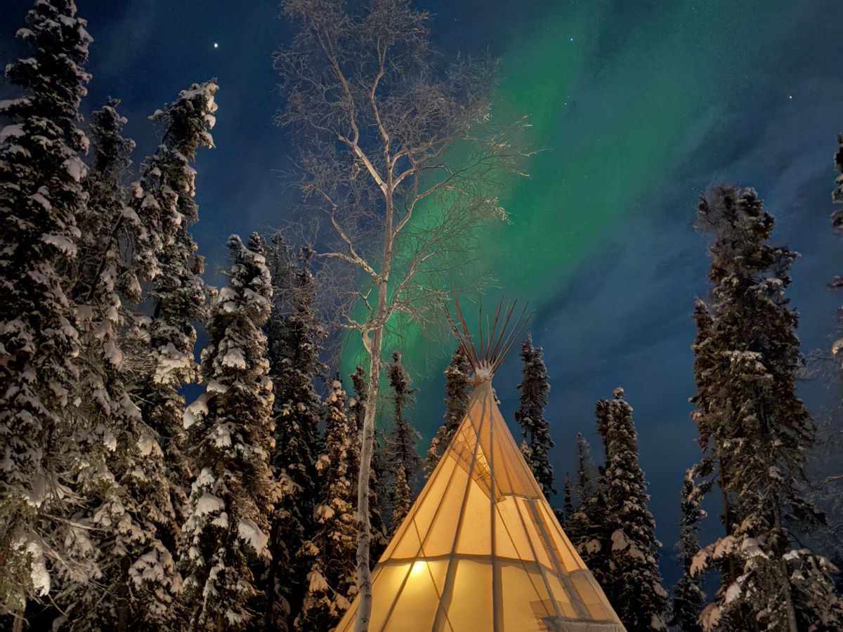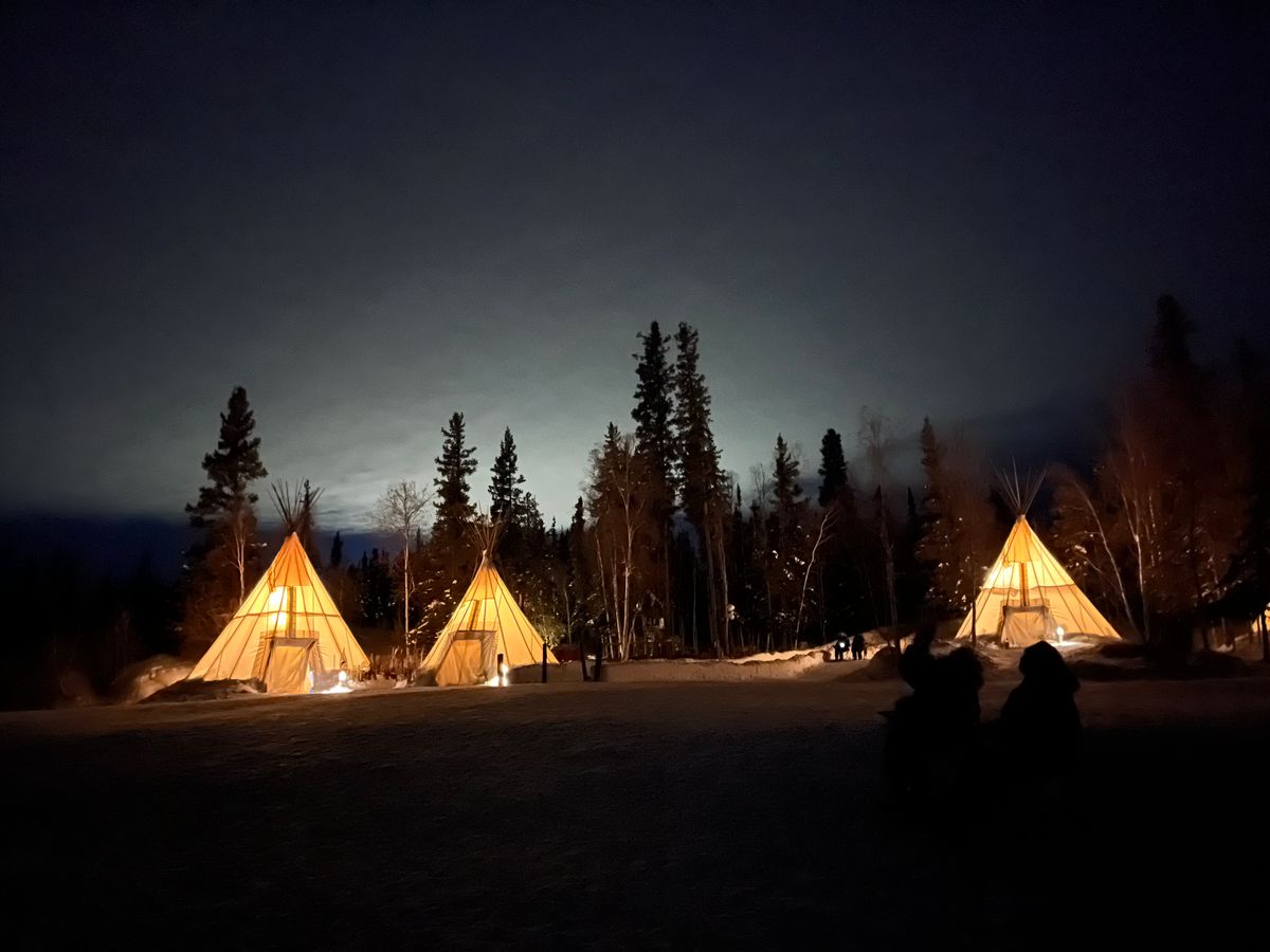 ツアー内に用意されているキャンプ用の椅子は楽に空を見上げられ出てくるオーロラの形や変化を楽しめます。TPというテントは広く大きな薪ストーブと暖かい飲み物のお陰でイエローナイフならではの雰囲気を楽しめました。ダイニングルームでもTPと同様に温めますが何より清潔で広いトイレがあり安心でした。