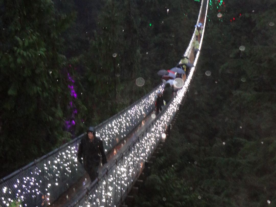 久保田様、雨のキャピラノ吊り橋でしたが、比較的空いている状態でイルミネーションをお楽しみいただけて何よりでした。年末の晴れている夜は、橋を渡るのにも並ぶくらいですから、かえって雨天のほうが時間的には余裕があったかと思います。次回はぜひ季節を変えて、鬱蒼と茂る森林の様子や真っ青な空が映るキャピラノ川の風景をお楽しみいただきたいと思います。またのお越しを心からお待ちいたしております。(担当:石川)