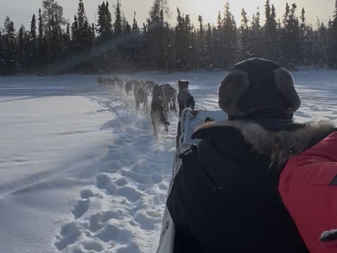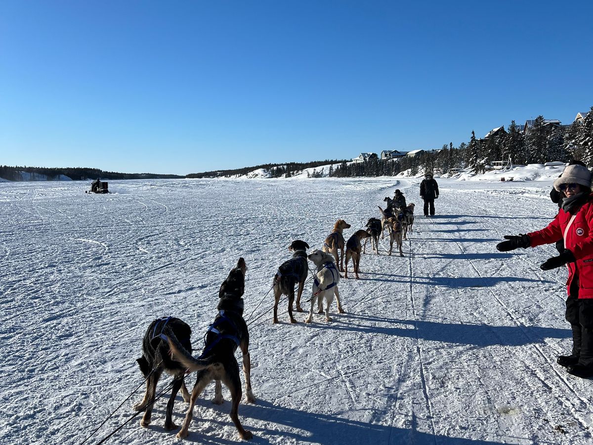 やりたかった犬ぞり体験、晴天で景色も良く、運良く先頭に乗ることができラッキー!と思ったのも束の間、走り始めると寒すぎて指先と顔は痛く、ただただ、早く終ってくれることを思いながら約15分乗りました。この日の気温は-40度でした。