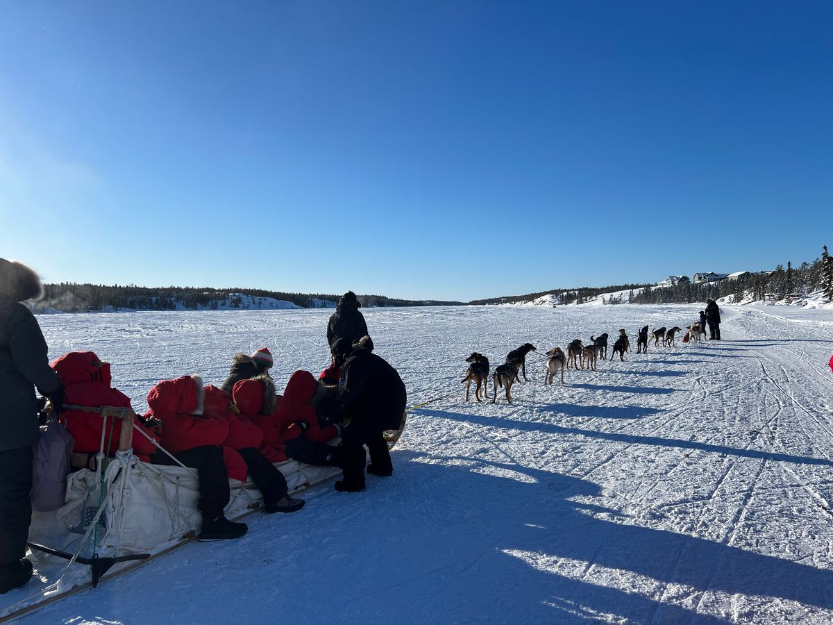 そこで8人程ずつのグループに分かれ、戻ってきた犬ぞりに乗車します。