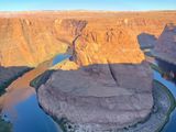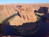 続いては、ホースシューベンドへ。駐車場から1kmちょっと歩いたところから見える渓谷で、川の侵食によりできた形が馬蹄に見えることが由来です。形的には日本の徳島県の祖谷渓のひの字渓谷に似ています。手すりもありますが、撮影スポットは断崖絶壁なので足もすくみます。