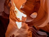 ホースシューベンドを後にして、今回のツアーの中で楽しみにしていた(ロウワー)アンテロープ・キャニオンに向かいました。ナバホの言葉で「水が岩を流れる場所」という意味を表す自然がつくり出した絶景が見られる場所です。ツアーは、12人前後のグループに分かれてナバホのガイドにより入っていきます。急な階段を下ったら、不思議な空間、そして絶景が広がっています。