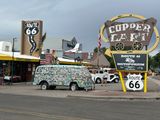 そして、グランドキャニオンを後にして、昔の交通の大動脈だったルート66へ。ところが、事故か何かあったのか大渋滞。撮影ポイントに着いたら、パッと写真を撮って移動することになりました。