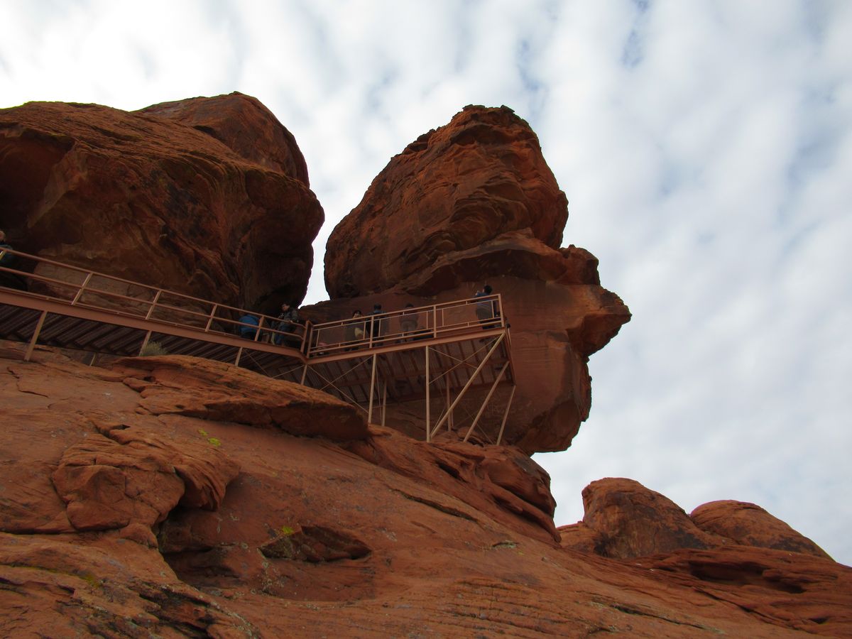 快晴のもと、奇岩と先住民文字・絵(階段100段?後)