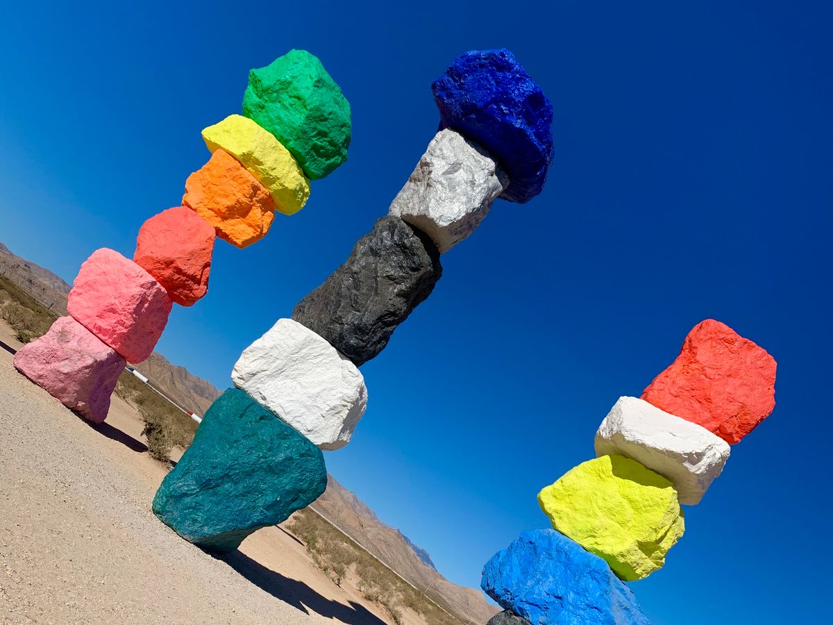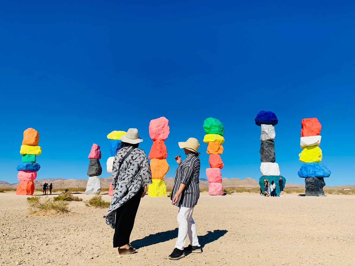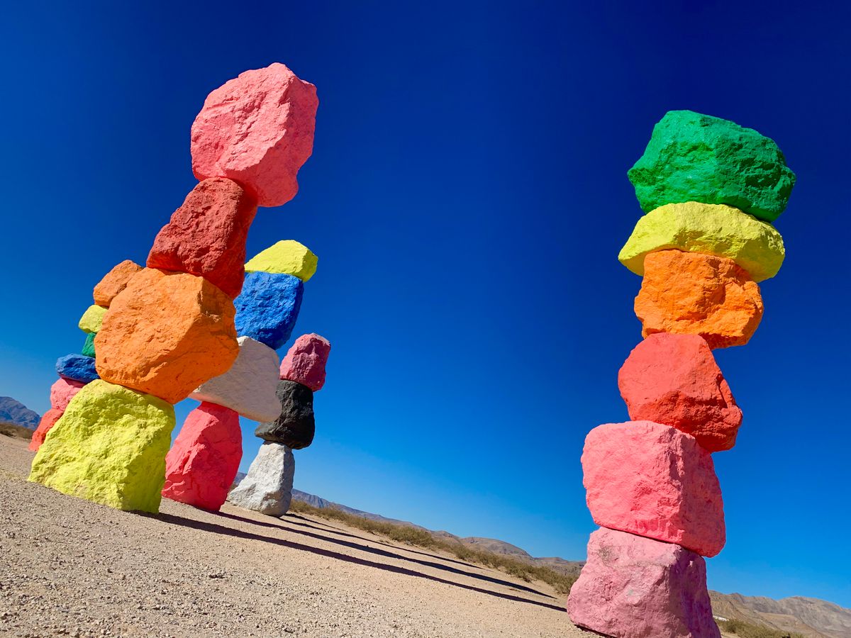 期間限定で見られるSeven magic mountainsはラスベガスに行ったら是非見てもらいたいです。青い空にヴィヴィッドカラーの石像がドーンと砂漠に建つとっても不思議なインスタ映えスポット!都心部からもそこまで離れてはいないのですが何もない砂漠地帯にあるのでレンタカーかツアーが必須になります。