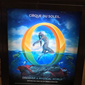 二度目のラスベガスでしたが、前回見ていなかったシルクドソレイユを今回は見ることにしました。シルクドソレイユはいくつかのホテルで行われていますが、宿泊したホテルから近いベラージオでの「O(オー)」を選びました。「O(オー)」は月曜、火曜が休演日のため日曜の9時半の回を予約しましたが、当日はグランドサークルのツアーから帰ってくる日で、開始時間に間に合うか少々心配でした。幸い、8時半には宿泊ホテルに帰ってくることが出来、再チェックイン後、9時過ぎには入場できました。