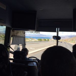 隣のホテルでのピックアップはドライバーが迎えに来てくれて、Welcome Las Vegas サインで写真ストップをしてグレイラインの営業所で受付。体験談を見ていたので問題ありませんでした。ドライバーの解説を聞き、景色を見ているうちにほどなく到着という感じでした。