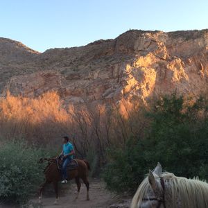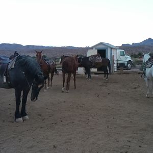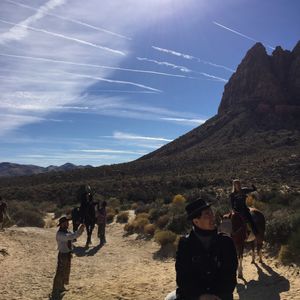 ラスベガスの滞在が短かったので午前中に楽しめるものと考え、こちらを申し込みました。50代夫妻で初めての乗馬です。結果、とっても楽しく素敵な思い出となりました。英語が話せたらもっとコミュニケーションがとれたと思いますが、単語片言でもフレンドリーなスタッフが気を使ってくれてたくさん笑いました。乗馬はただ乗っかっているだけで大丈夫です。お利口さんな馬が連れて行ってくれます。素晴らしい山々の景色も楽しめました。写真も沢山撮ってくれました! 持参すると便利な物は、土ほこりがたつのでマスクですね。ショルダーバッグは預けなくて持ったままOKです。また参加したいツアーです。