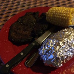 ステーキは乗馬中に焼いてくれます。乗馬前に焼き加減を聞かれるので、ミディアムくらいがちょうどいいかも。最初に聞かれたので焦ってとっさにWellって言っちゃいましたが、ウェルダンだと写真のように結構がっつり焼いてくれます。笑 おいしかったですが、ミディアムが圧倒的に多かったです。