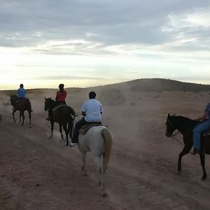 砂漠の中を馬で1時間近く走るツアーでした。英語ガイドさんでしたがあまり関係有りませんでした。とっても楽しいガイドさんで親切でした。オーストラリア、アメリカからのお客さんも一緒で楽しいツアーでした。何と言っても馬乗りがこんなに楽しいとは思いませんでした。牧場のおじさんたちもとっても親切でおもしろいカーボーイでした。外国の小さな子どもさんも乗っておられました。乗馬のあとのロッジで食べた食事もステーキが出てすごくおいしかったです。ぜひ、おすすめのツアーです。