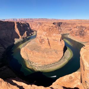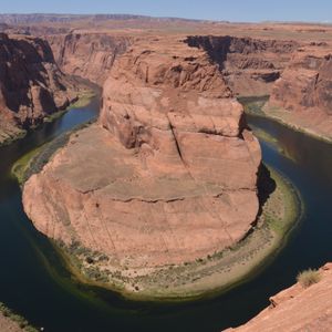 2日目のホースシューベンドは崖から落ちないようにとハラハラしながらもなるべく際までにじり寄って川を眺めてました。底を流れる川までの距離が遠すぎて、自然の造形に嘆息するばかり。滞在時間は約30分(除く、駐車場との往復時間)と短かかったので、名残惜しかったです。