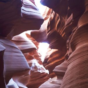 午後に訪れたローワーアンテロープではナホバ族によるツアーへ参加し、ガイドさんの巧みな写真撮影テクニックに魅了されました。もちろん、狭い空間から眺める岩肌の明暗・この世のものとも思えないグラデーションには終始感動を覚えます。ガイドさんはフレンドリーに写真撮影を申し出てくれるので、そこで遠慮せず、ご自分のスマホを渡して被写体になってください。同行者同士で写真を撮ることもできますが、ガイドさんの方が撮る場所、カメラを向ける角度、構図どれも熟知しているので、お願いした方がよいですよ。