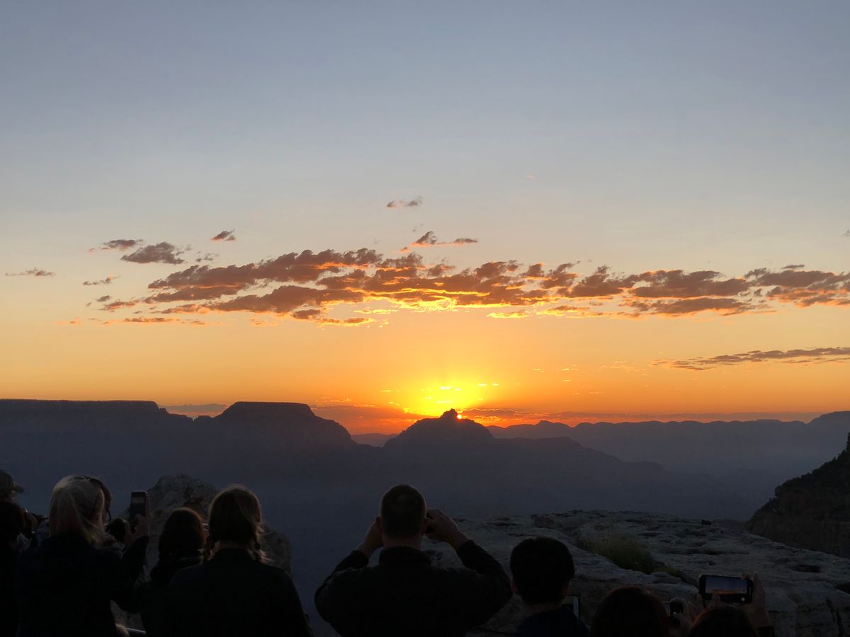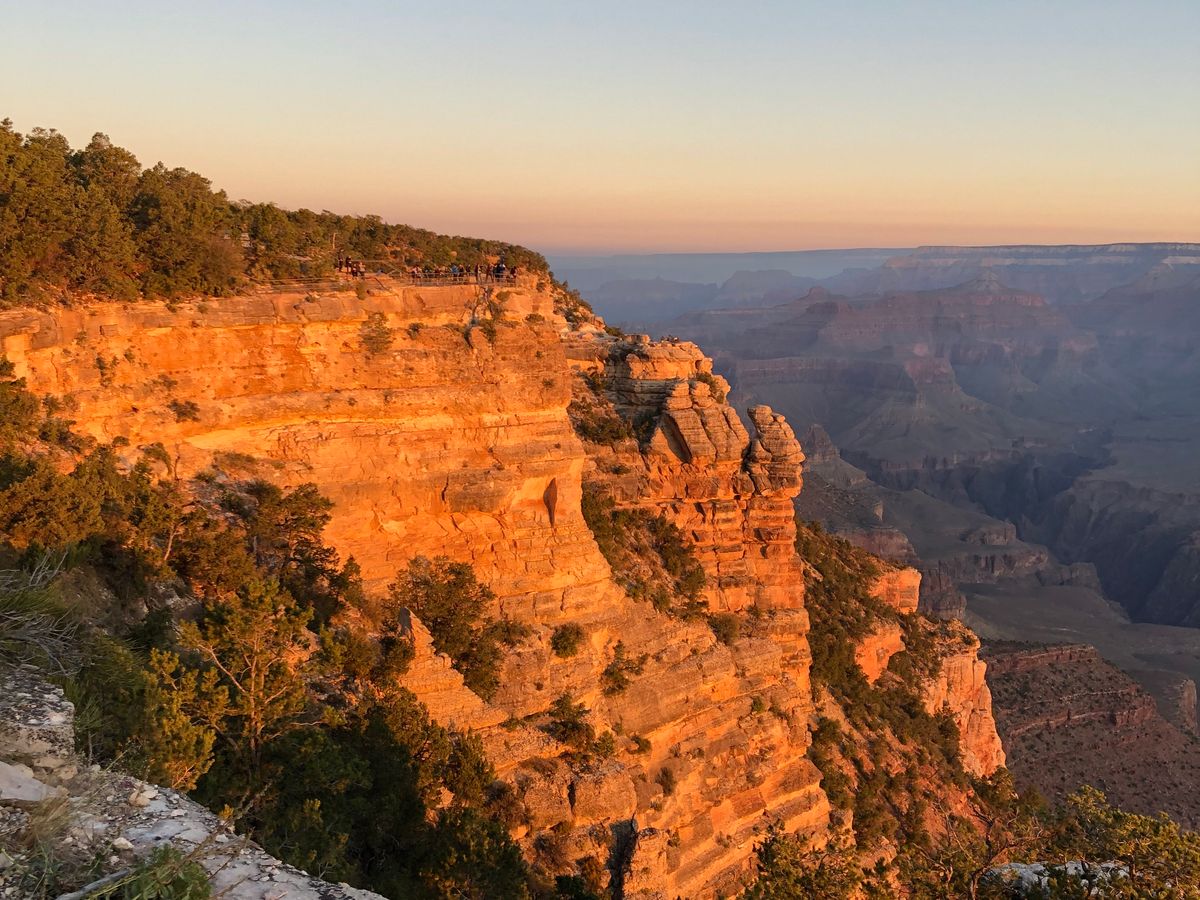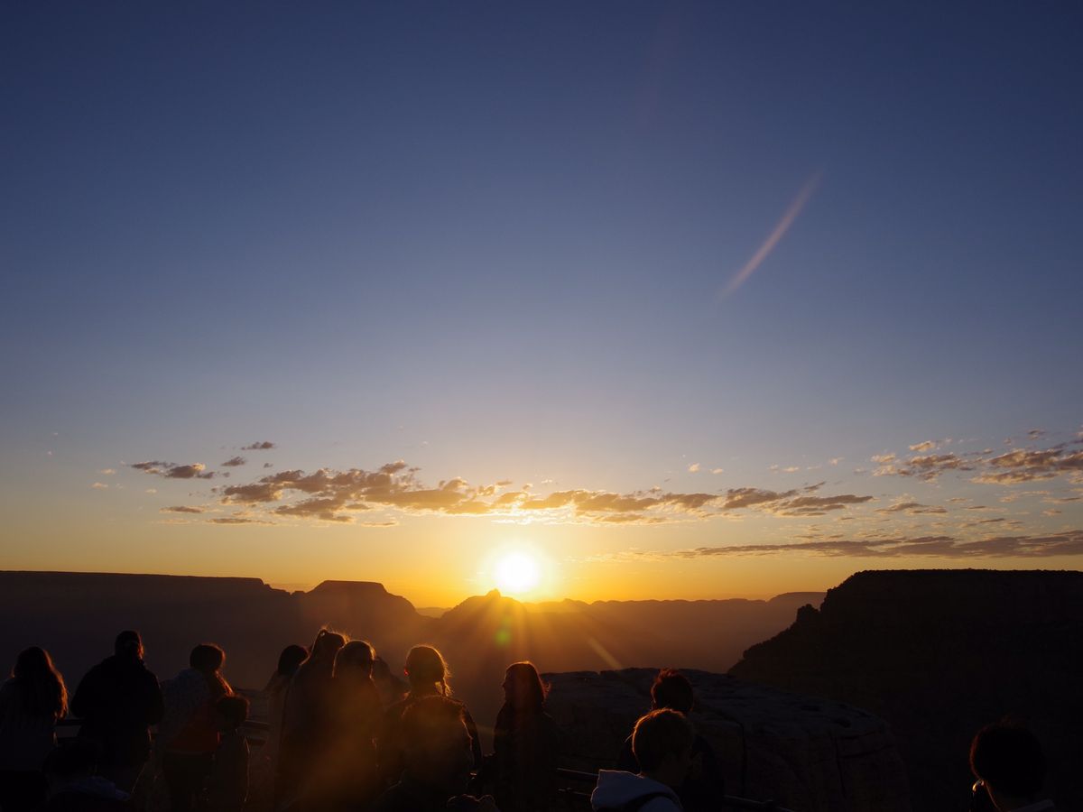 セドナを出発し、次はグランドキャニオンで夕日鑑賞です。どこまでも続く岩肌が夕日に染まっていく光景は本当に絶景でした。いつまでも眺めていたかったのですが、真っ暗になる前にホテルに向かいます。