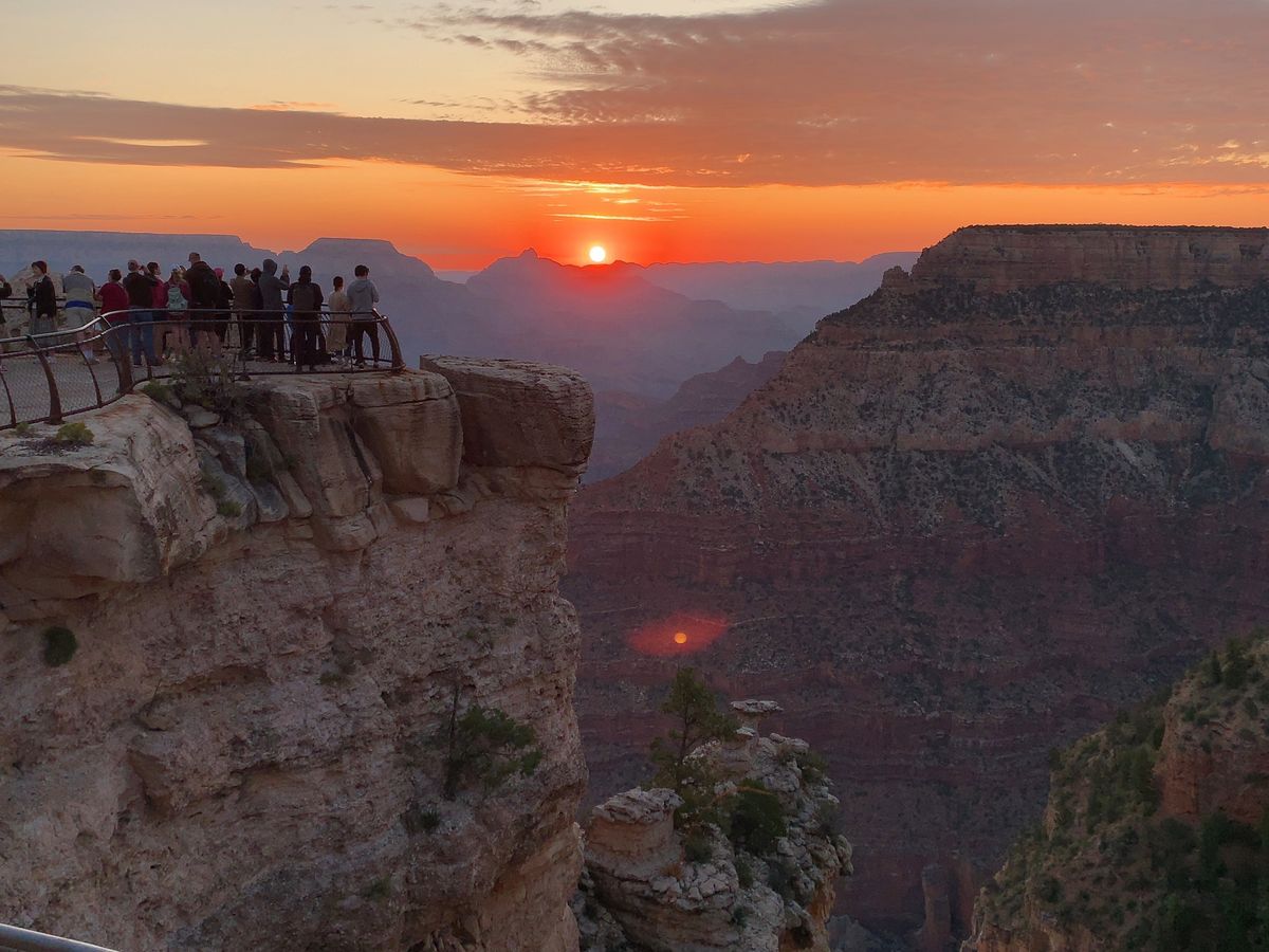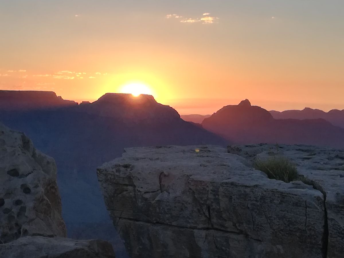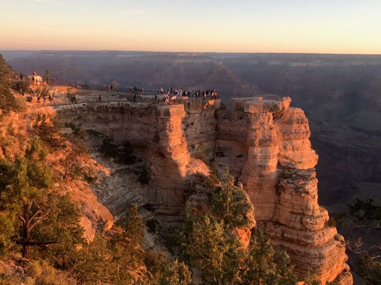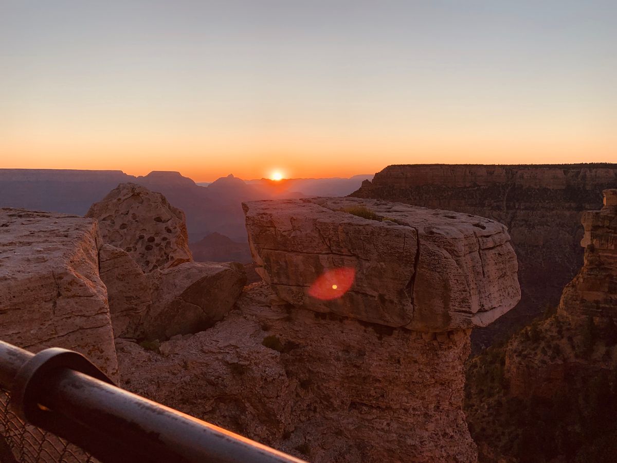 セドナを出発し、次はグランドキャニオンで夕日鑑賞です。どこまでも続く岩肌が夕日に染まっていく光景は本当に絶景でした。いつまでも眺めていたかったのですが、真っ暗になる前にホテルに向かいます。
