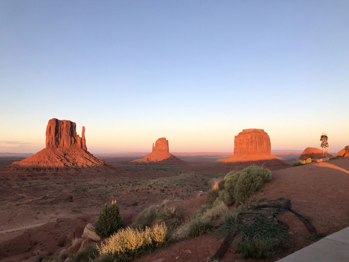 モニュメントバレーではザビューホテル泊で、ベランダからはミトンズビューが時間によって違った景色が眺められます。
