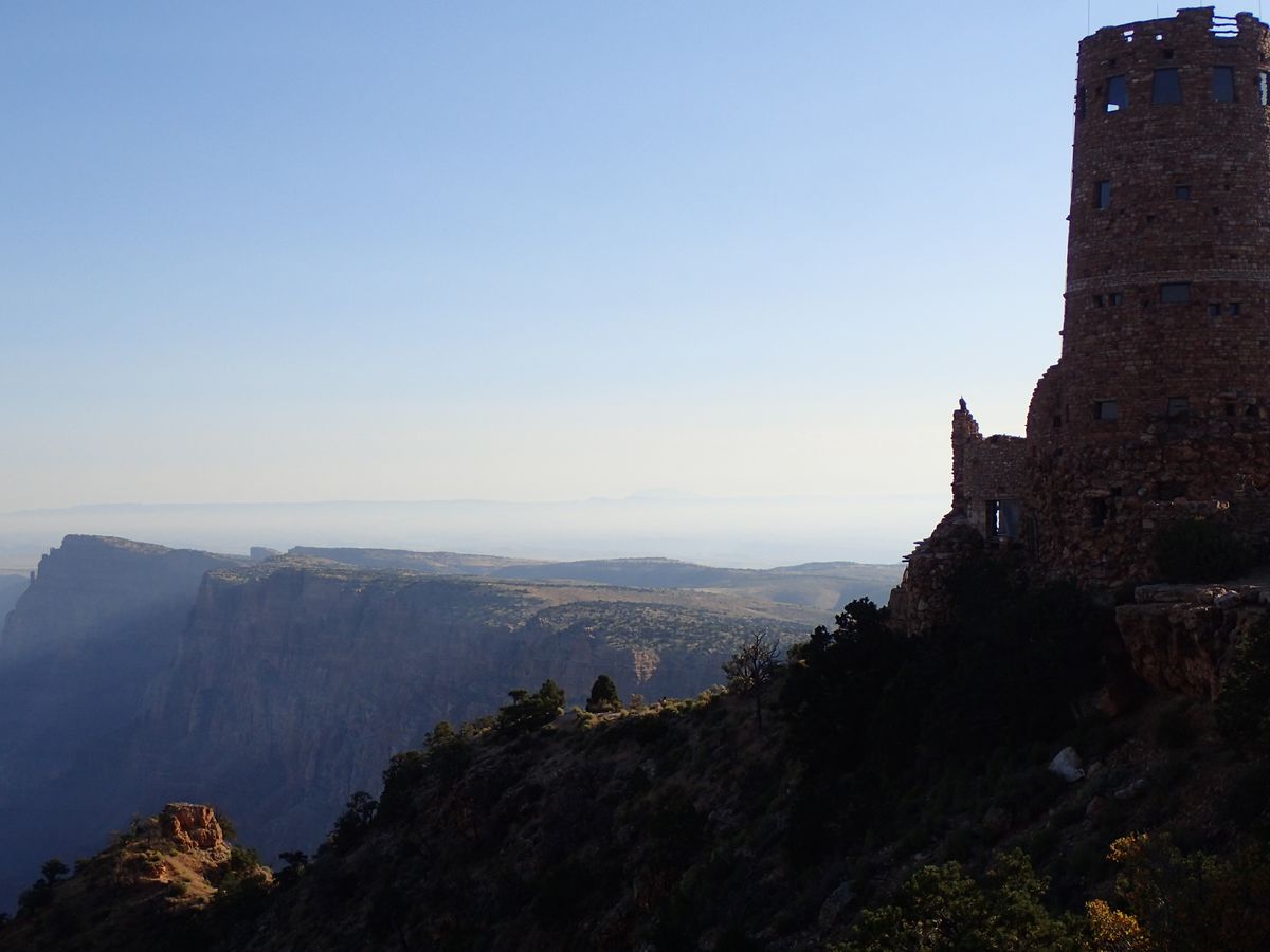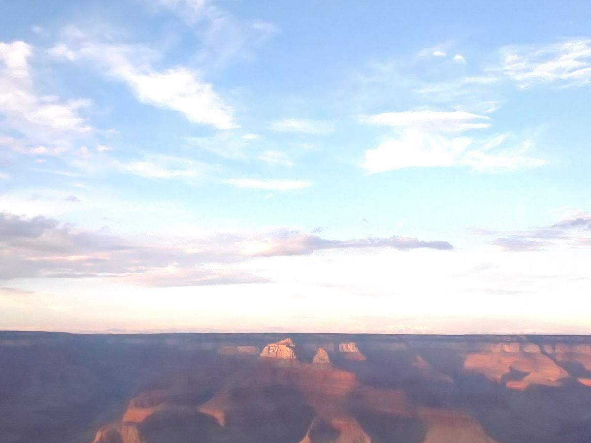 少し天気が悪く、日の出は見ることが出来ませんでした。早朝のためウォッチタワーや土産物店も閉まっていました。グランドキャニオンを離れ、しばらく走る間に雲が流れて空が晴れてきたので、もうあと少し滞在時間が長ければ良かったのに、と思いました。
