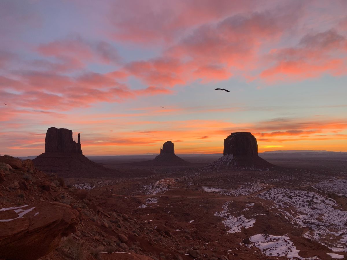 前日に降った雪の影響でグランドキャニオンでの夕日は見れませんでしたが、朝日は最高でした。