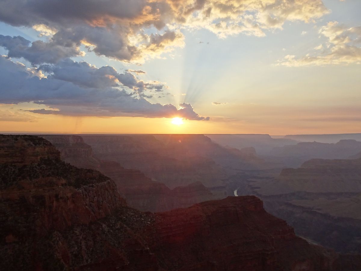 グランドキャニオンは曇っていたため、朝日が良く見えませんでしたが、それでも本当に満足しました。天気がよろしくなくても、それはそれで心に残る風景になるので、ガッカリする必要は全くないと思います。どのような天気でも素晴らしいです。