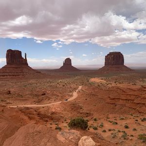 景観に圧倒され、そして、モニュメントバレーでは、360°赤土と巨大な岩の