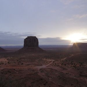 ビューホテルからのモニュメントバレーの景色もあいにくの曇り空でしたが、それでも夕暮れ時や早朝、岩肌と空の色が変化していくさまは本当に幻想的でした。