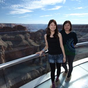2番目でスカイウオーク3番目がもっと壮大な風景を楽しむことができます。スカイウオークでは荷物は全てロッカーに入れて靴にはカバーをかけます。カメラも持ち込み不可ですがカメラマンがいるので写真を撮ってもらえます。これが結構高額なのでUSBで購入した方がよいと思います。1枚$30でUSBは$80です。USBを購入しましたが自分の写真とグランドキャニオンのみの写真の合計37枚入ってました。